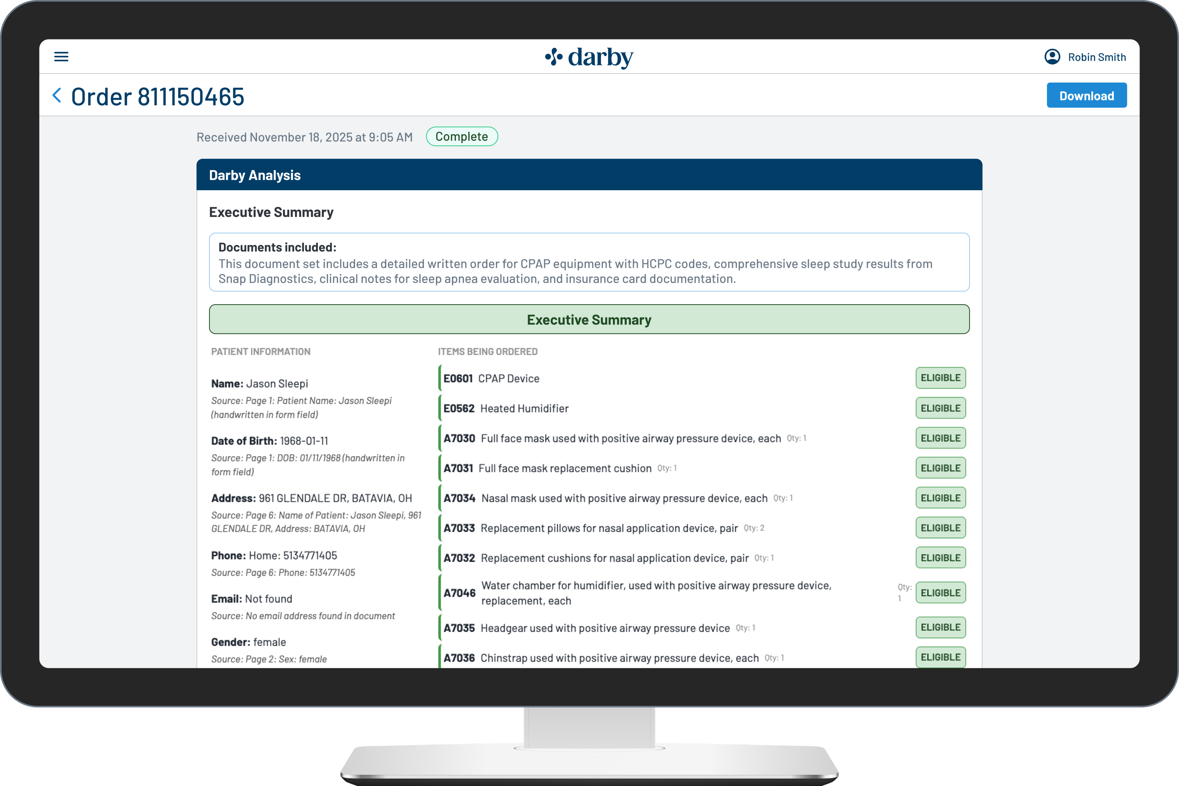 “Darby has made order processing twice as fast for our PAP intake team.”